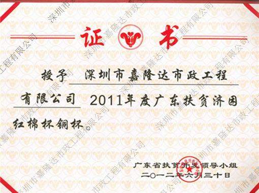 2011年度廣東扶貧濟(jì)困紅棉杯銅杯