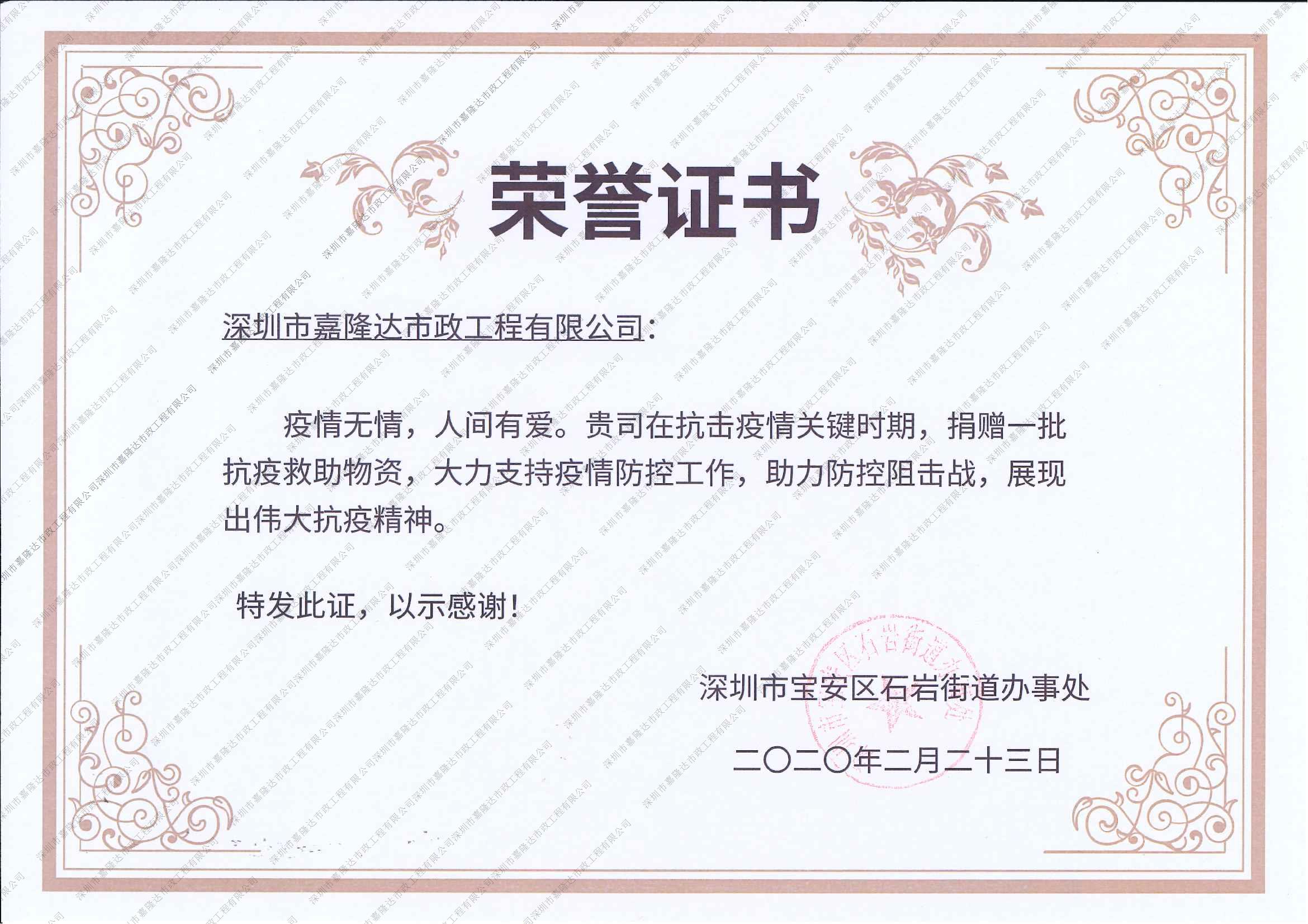 疫情捐贈(zèng)榮譽(yù)證書(shū)
