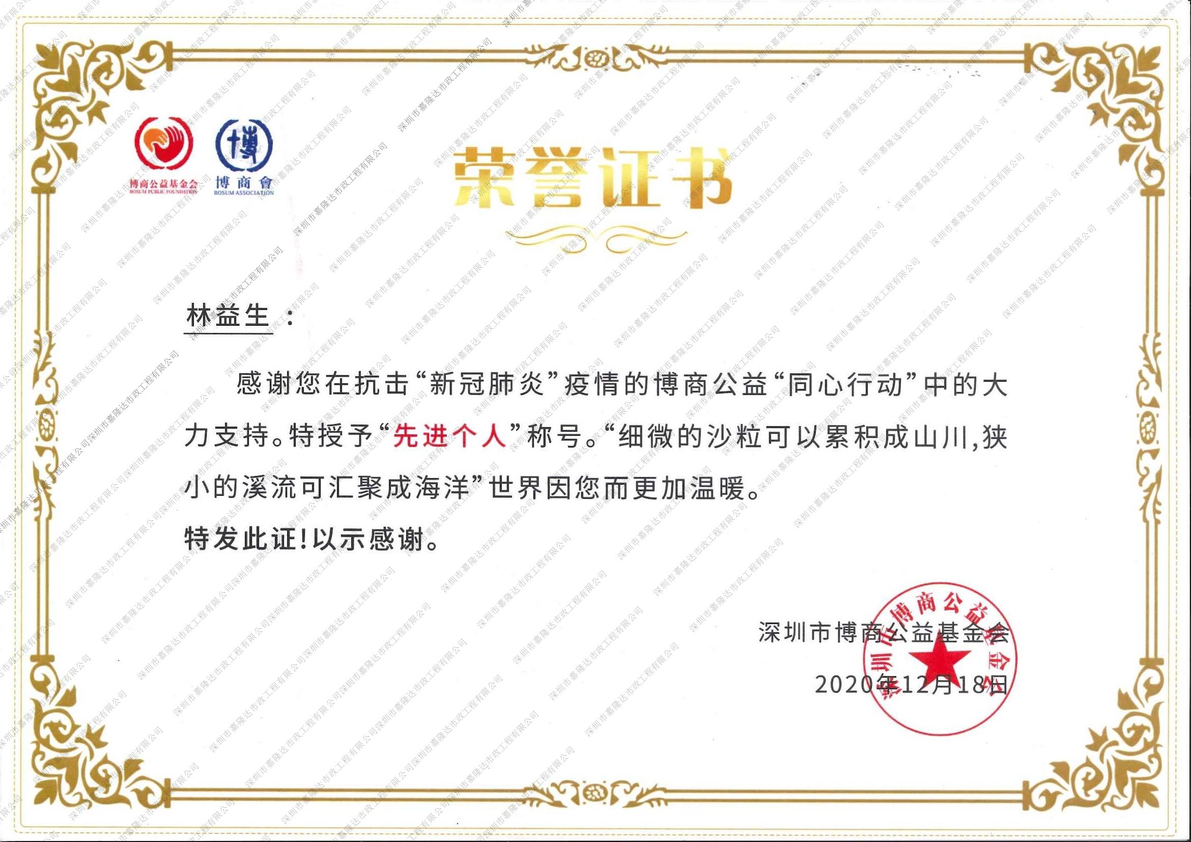抗擊新冠肺炎榮譽(yù)證書