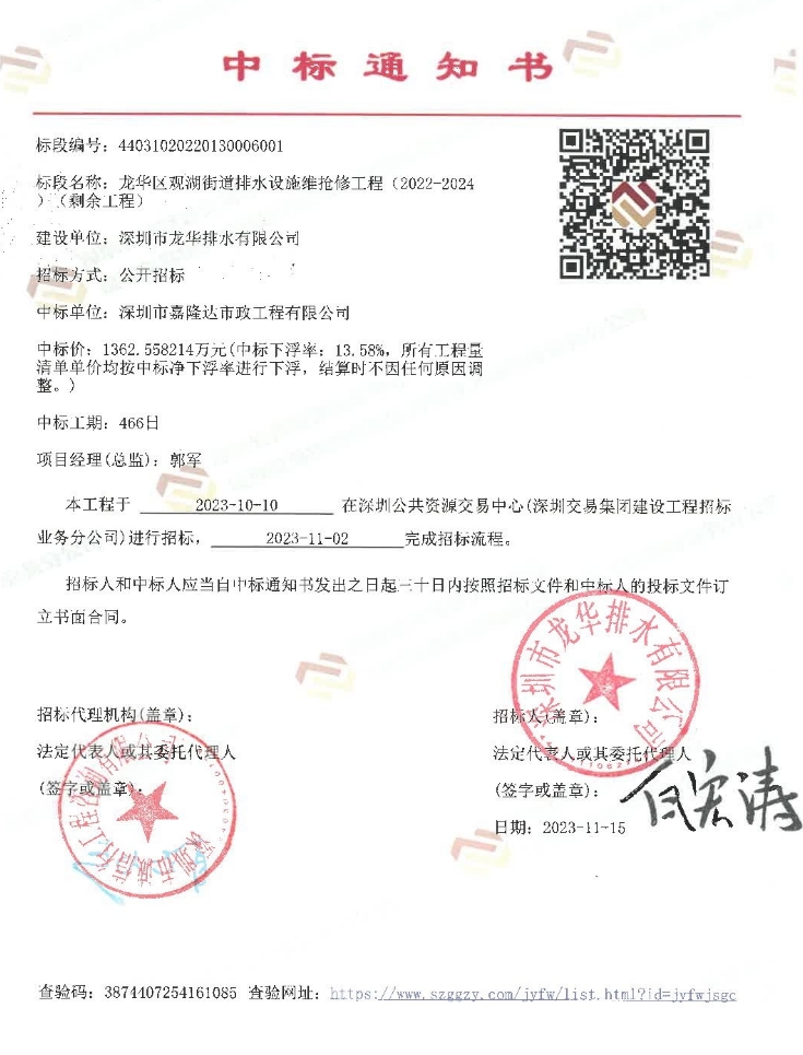 喜訊!公司中標龍華區(qū)觀湖街道排水設(shè)施維搶修工程(2022-2024)(剩余工程)