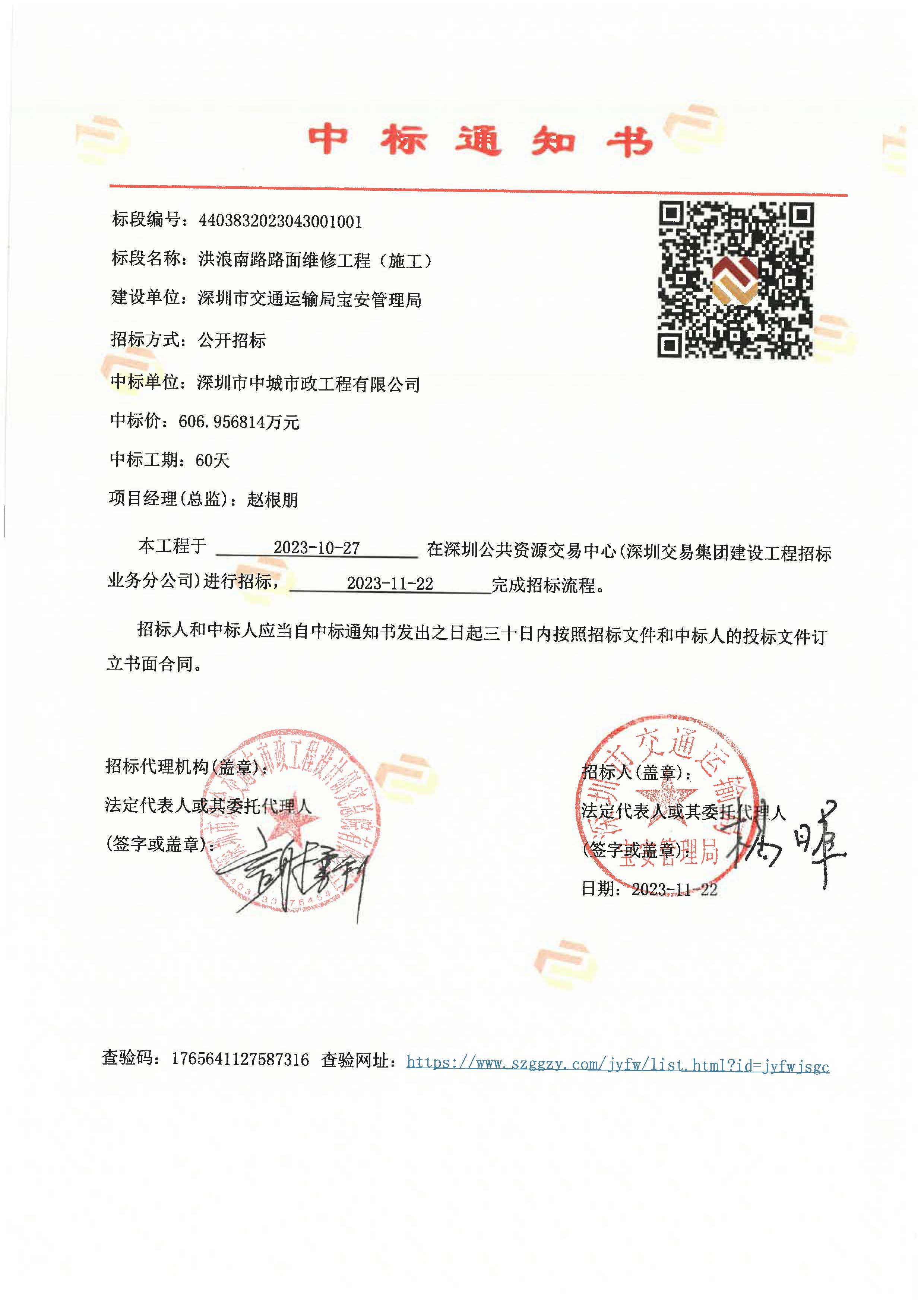 喜訊!公司中標(biāo)洪浪南路路面維修工程(施工)