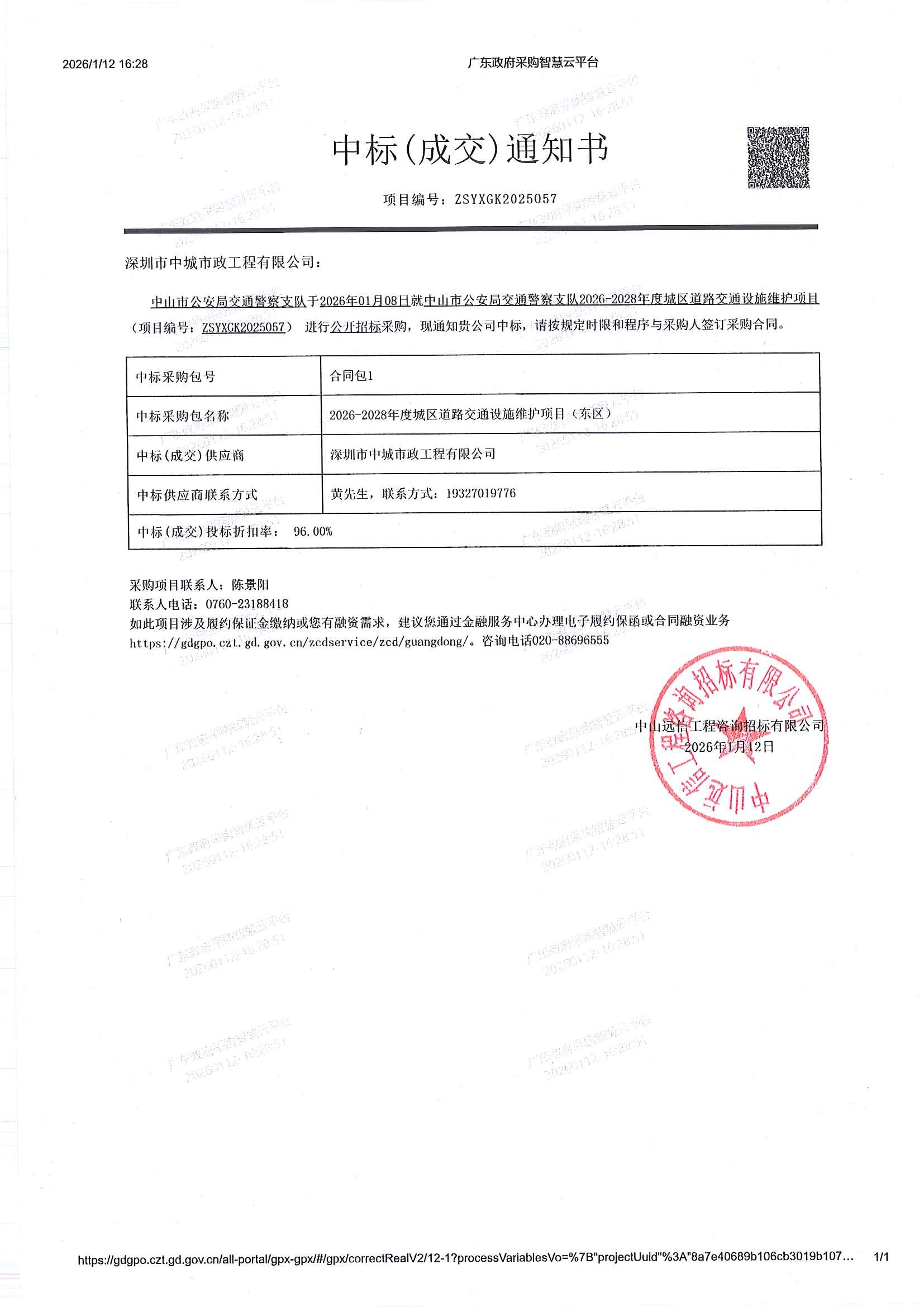 喜訊!公司中標(biāo)2026-2028年度城區(qū)道路交通設(shè)施維護(hù)項(xiàng)目(東區(qū))